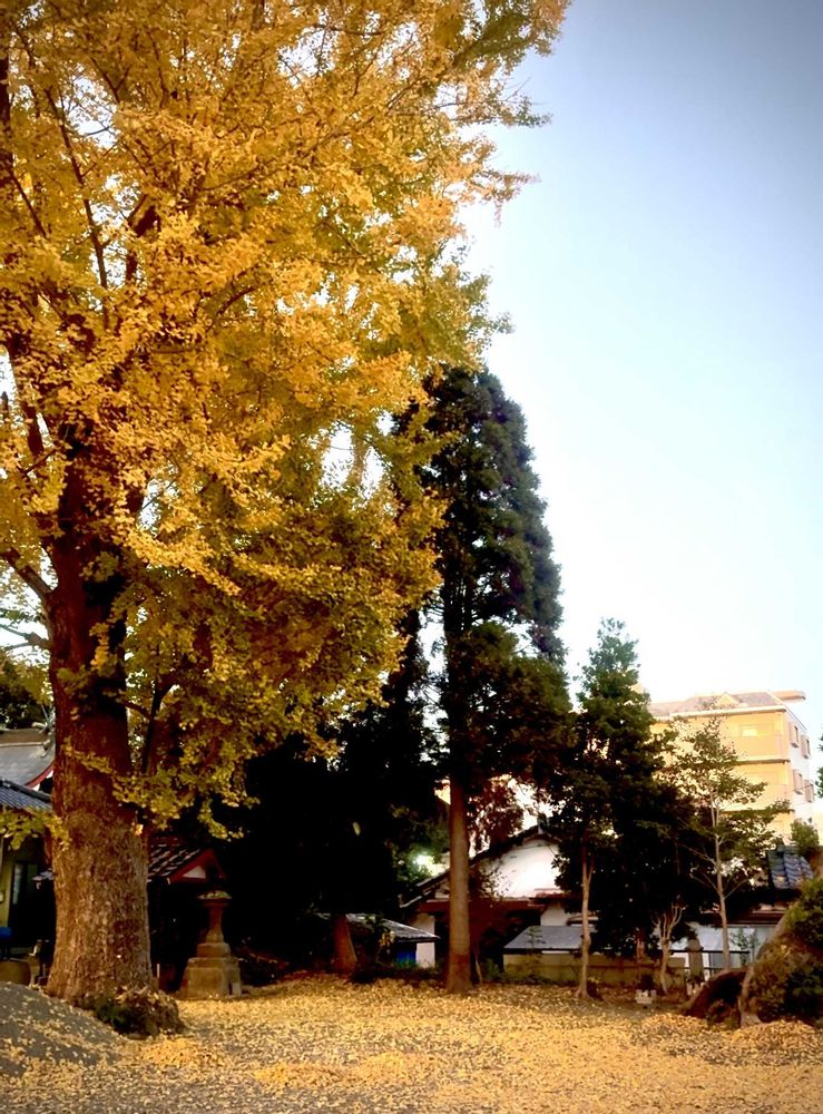 ⛩️神社の境内には、大中小の銀杏の樹が3本植栽されており、それぞれが落葉し始めており、境内の庭は敷き詰められたように落ち葉がいっぱい見られました、沢山落ちていたので、綺麗なものを少しだけ拾って持ち帰りましたデス🐶