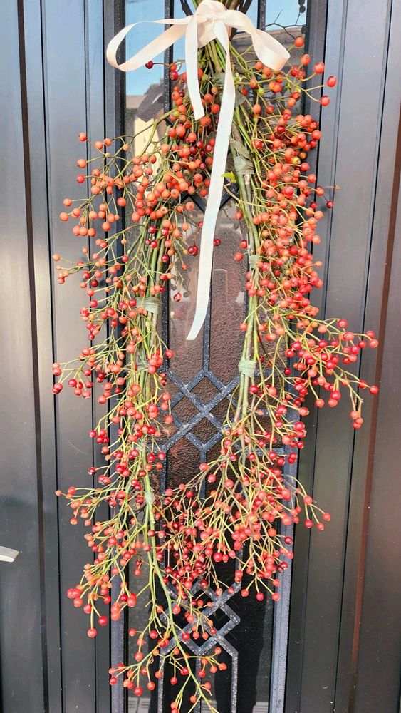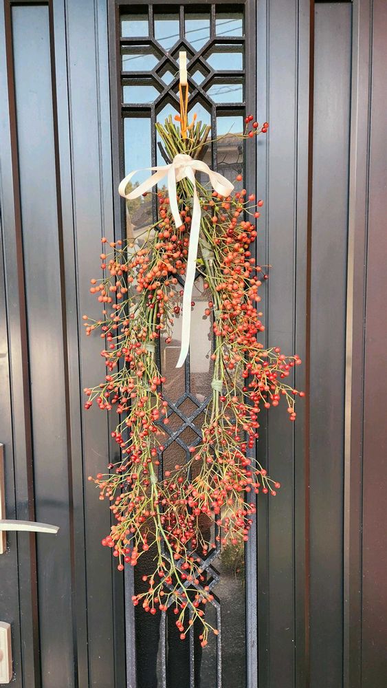 最初はリースを作るつもりでしたが😥硬くて曲げられなかったので、ぶら下げる事にしました(笑)🤭