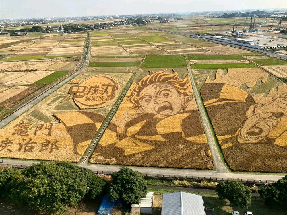 行田タワーから見た炭治郎とても迫力がありました✨稲が青々としていた時もまた違った風に見えたのだと思いますが、知ったのが遅くてギリギリ見に行けました😊