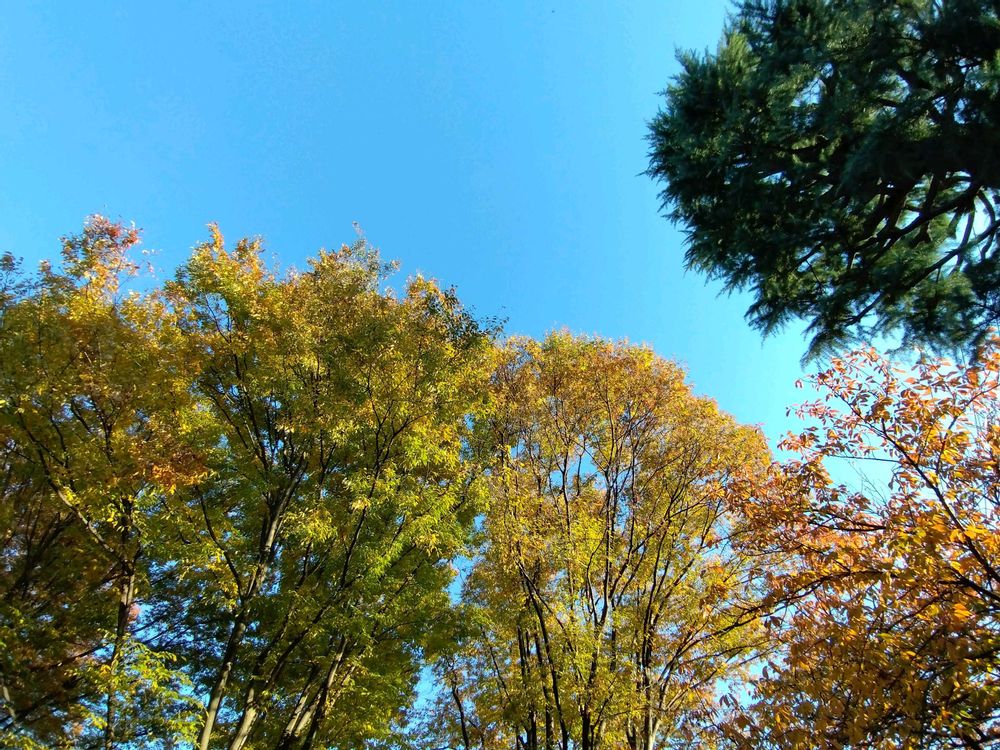 子供たちが遊具で遊んでいる間に📸黄色い葉はけやきかな💡