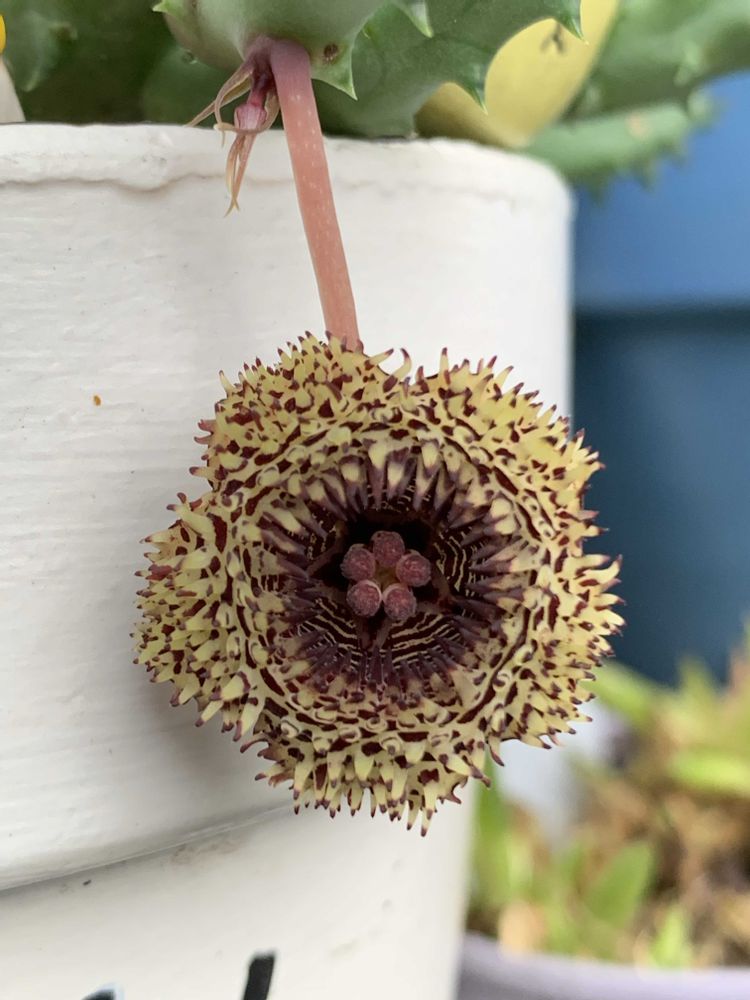 フエルニア竜王角、いわゆるガガイモなんですが、中々のインパクトありますよね〜くちゃいのが多いですが、この花は匂いはしません😁