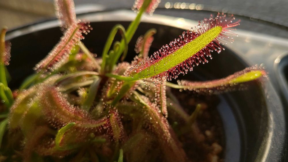 朝日で葉っぱの粘液がキラキラ✨だったので、速攻スマホを取りに部屋へ戻りました(笑)