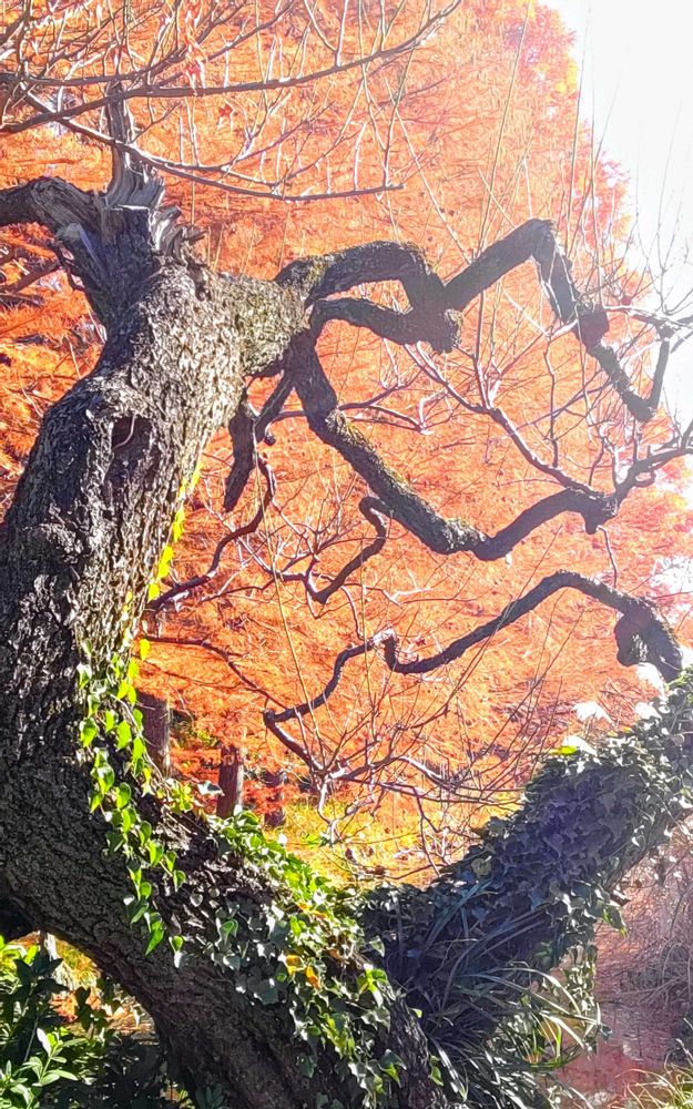 🧡🌈🌳 梅の古木と鮮やかなメタセコイアの紅葉🍁🍂︎︎𓂃⟡.·