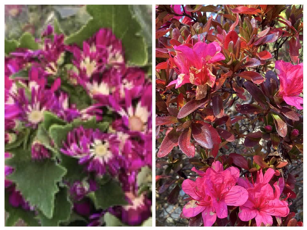 季節外れのツツジとサイネリアのコラージュにして投稿します。