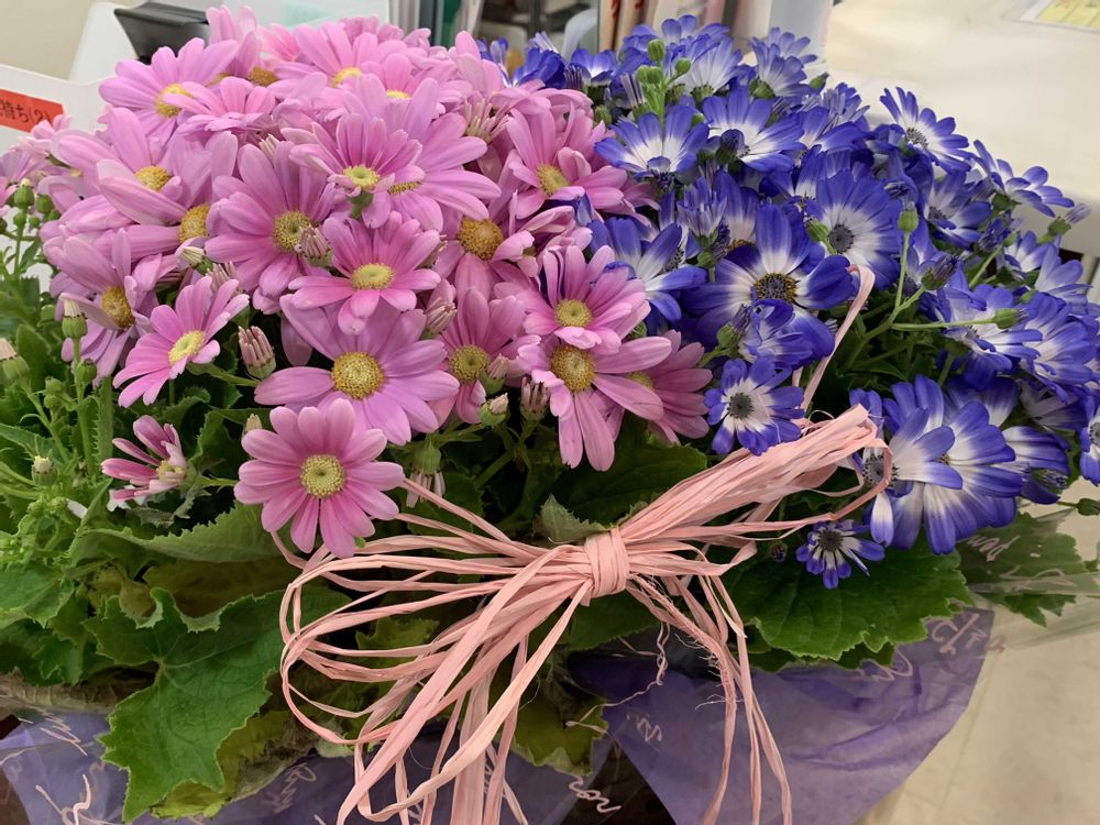 受付に飾られていたサイネリア🌸◦°