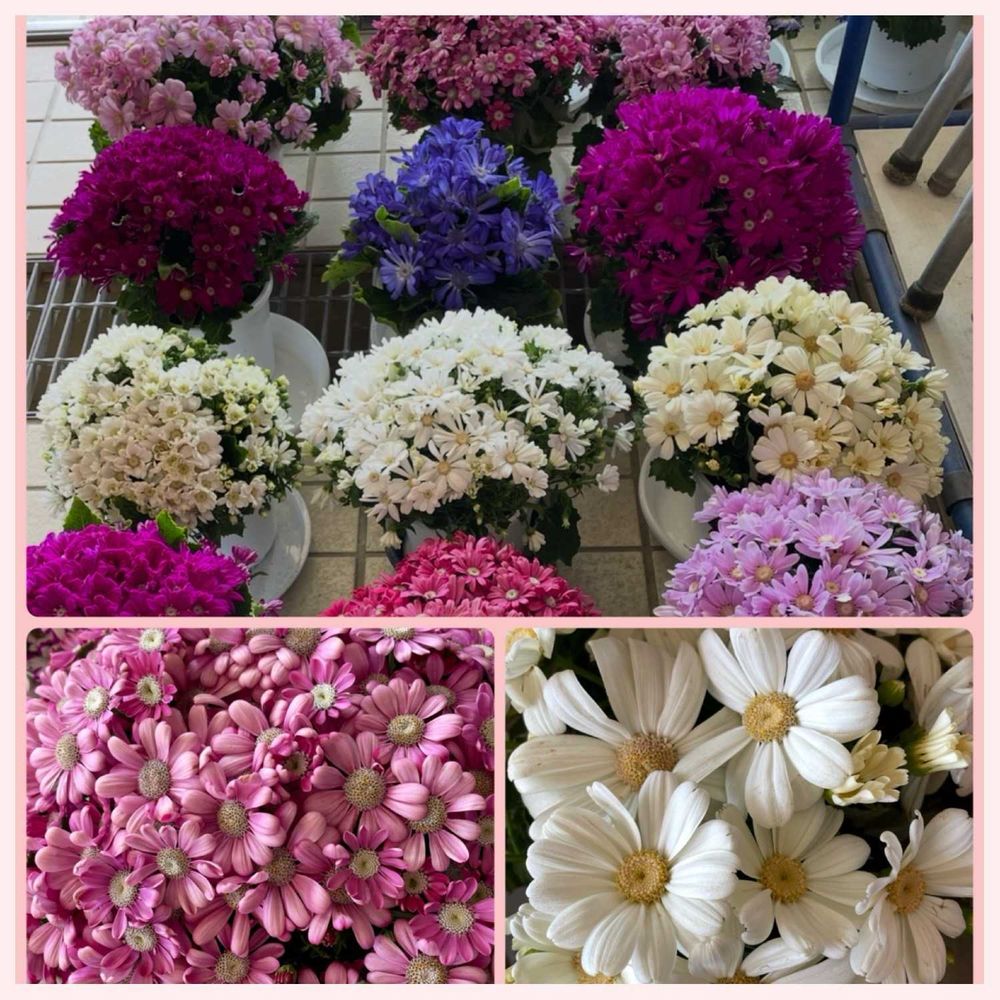 卒業式前に入りますがカラフルなサイネリアを全部並べて見るとキレイですよ😍