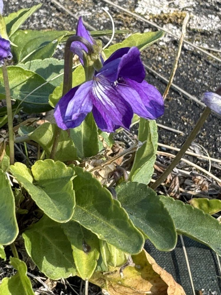 道路脇に並んだホンスミレの返り咲き。春が来たかのようです。