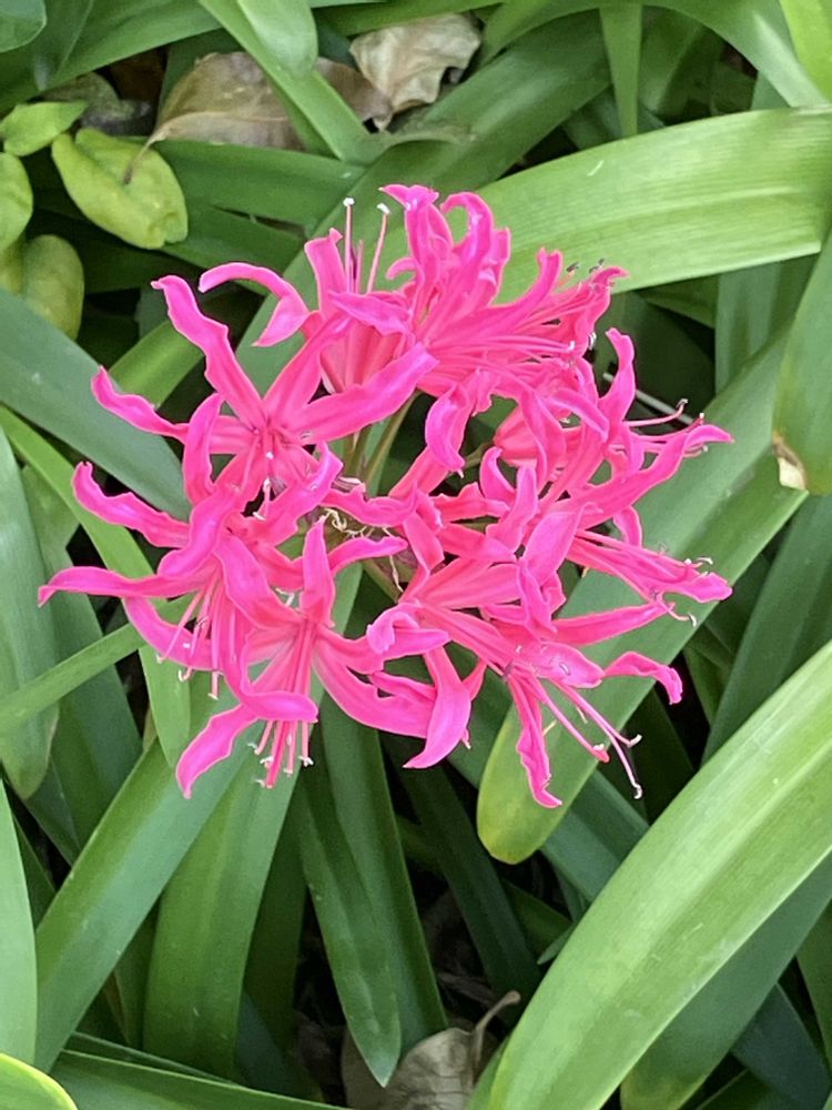 ネリネ(ダイヤモンドリリー)🩷🌿❶❷ ❸、アガパンサス💜🌿❹