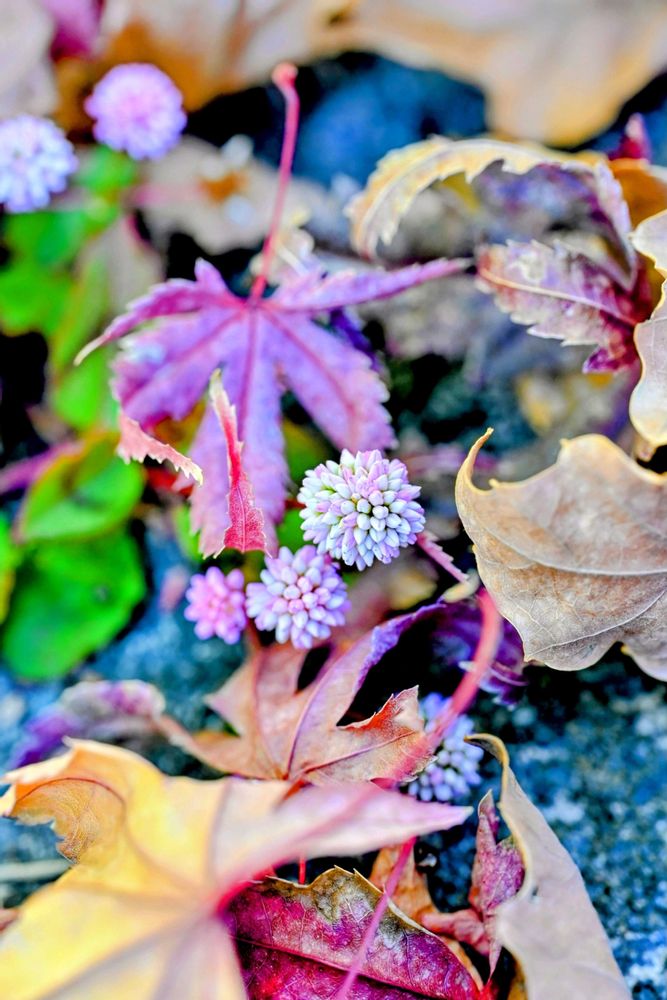 落ち葉の音を聞いてるヒメツルソバさんたちでした😌