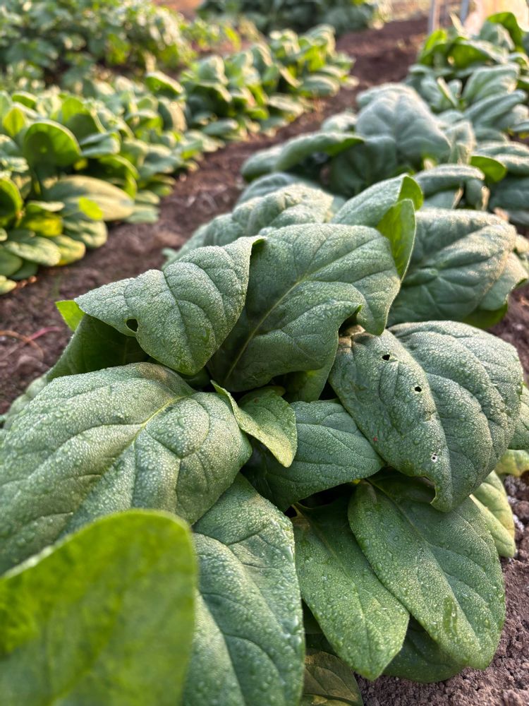 ほうれん草 霜が降りて美味しそうになってきました🌱 ガイラルディア🌼まだ咲いています🎶