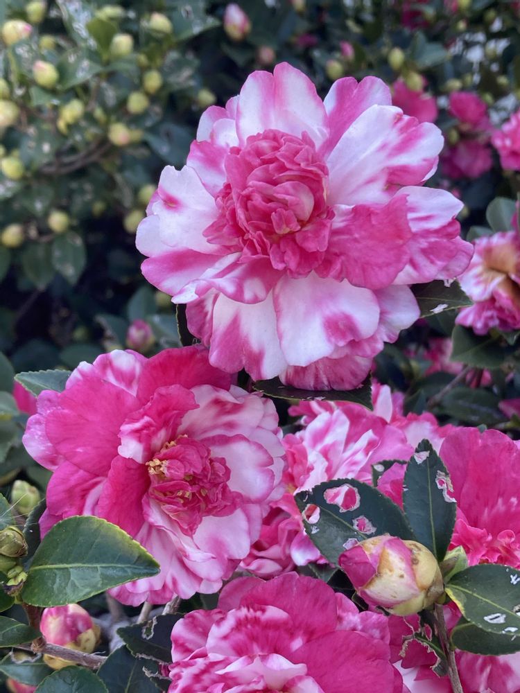 ツバキにも八重咲きでグラデーションが似たのあるけど それは開花期がもっと遅いと思うからこれはサザンカでいいと思うよ~🌸