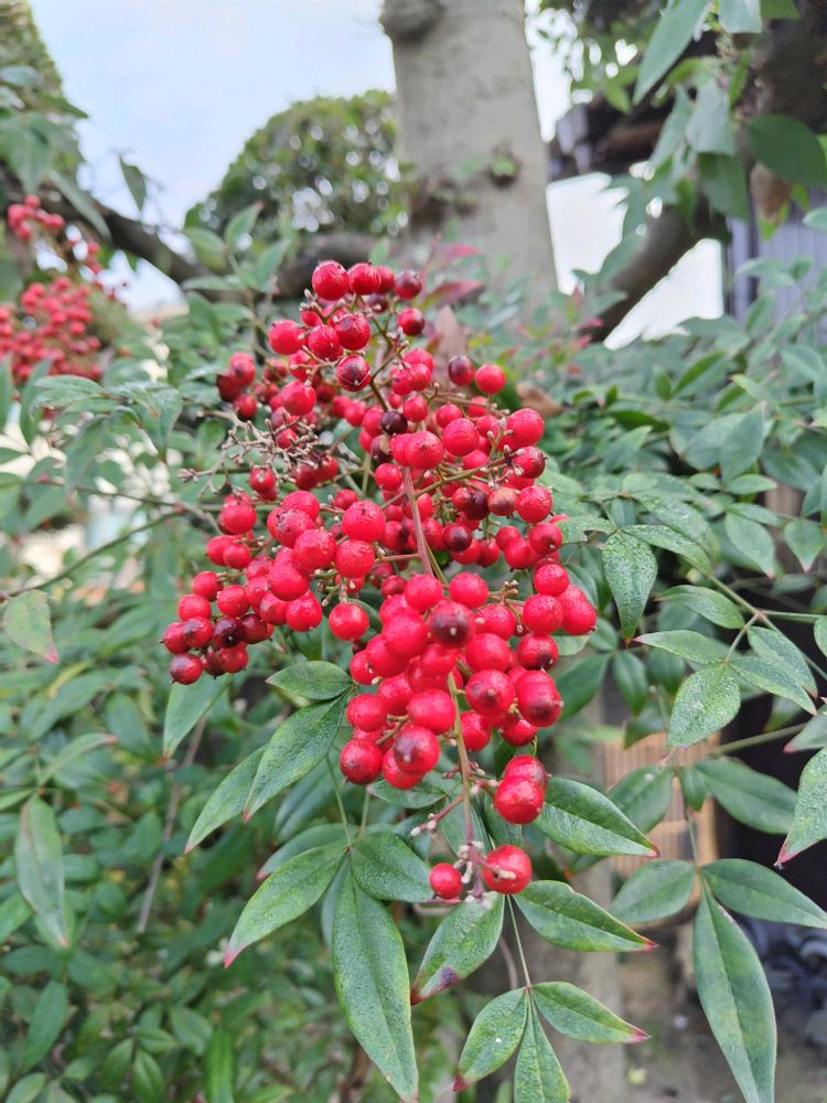我が家の赤い実達。鳥の仕業(恩恵😅)で、あちこちに出現します👍️植えたのは玄関横の南天のみです。