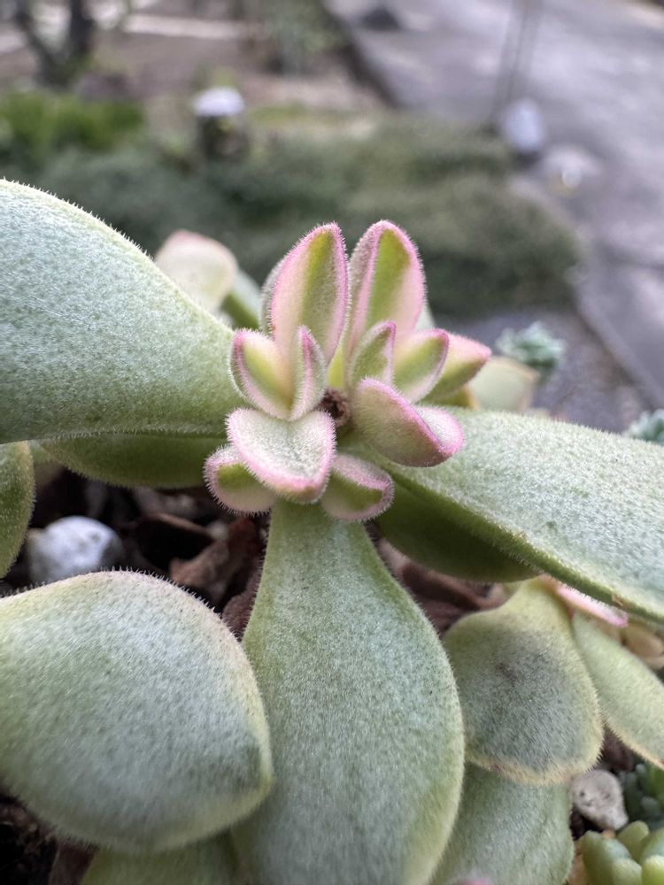 縁起の良い(?)植物の新芽🌱は 可愛らしいピンクの差し色が入っている🥰