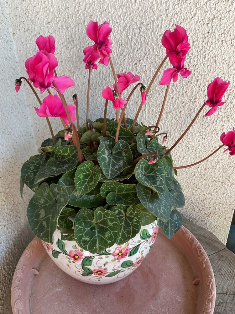 2枚目は 昨日 買って、植え替えたばかりの、一回り 小さいシクラメンです🌸