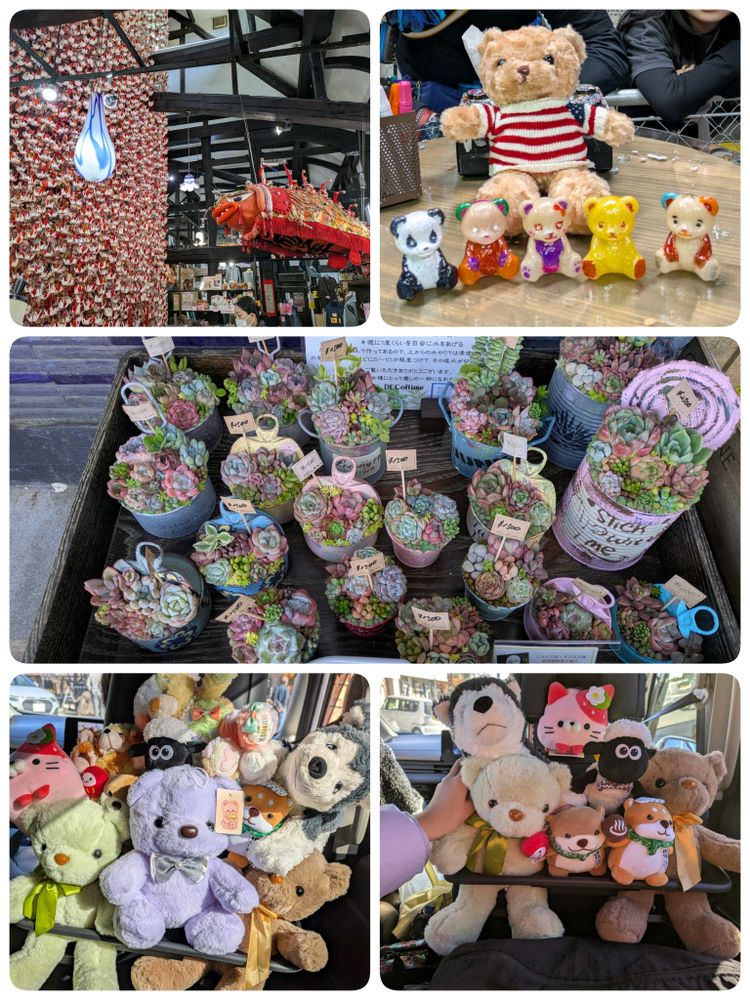 ギネスにもなってる吊るしびな〜1200人位のボランティアが参加してるって伺ったかな?鯉がいるんだけど、鯉の滝登りをイメージして飾っているそうです 今回子供が小学生時代に行ったおもちゃ館、あの時よりずっと立派になってるね〜でそこと翌日アメリカンビレッジってとこに、どちらでもテディベアに縁があって、ゲームやくじで茶色、みどり、紫と増えました〜色塗りを自由にしてくださいのコーナーでみんなでそれぞれくまちゃん塗り塗り〜(私はあっ🐼の日に使おう〜でパンダ色)ホテルでカワウソと柴犬買いました〜