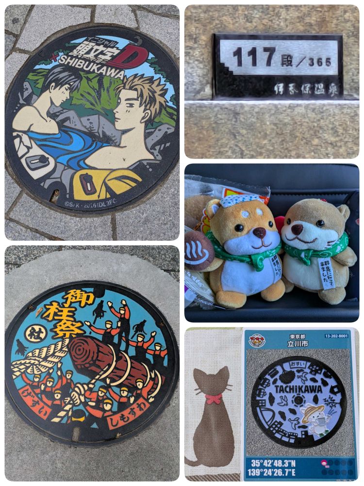 ④伊香保の階段でハチロクのマンホール発見!あっ9月の長野旅行で御柱のマンホール発見!あっ、立川のマンホールご紹介