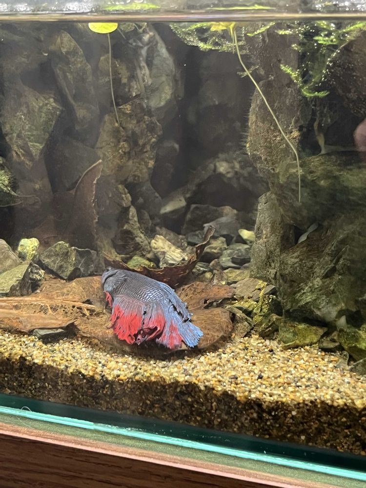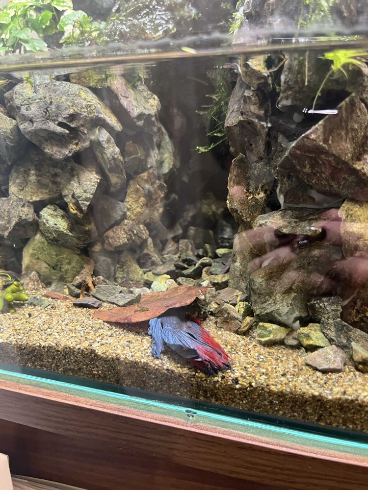 葉っぱがお気に入りでずっと掛け布団にしてたけど、いつの間にか敷布団にしてまする〜それにしても魚ってこんな寝方するのか?笑笑