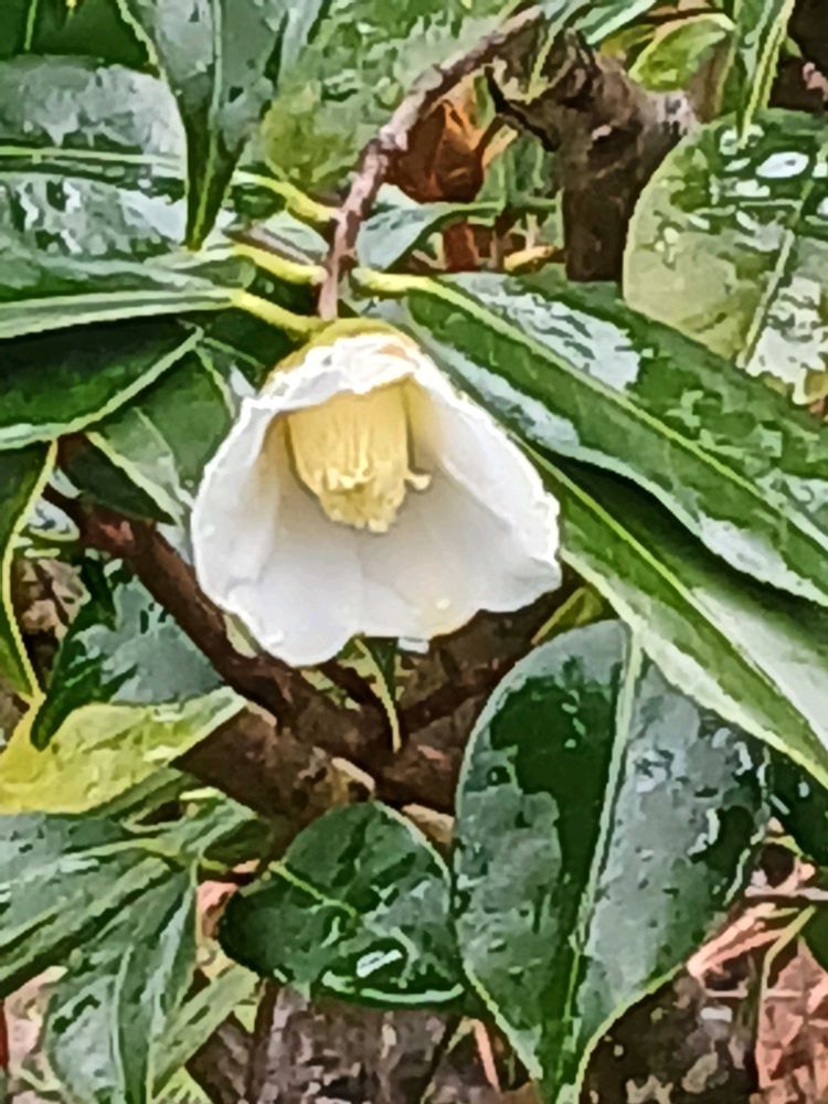 玄関を飾る花を探して、振り向いたら、白侘助が目に飛び込んで来ました。楚々として、それでいて華やか💕