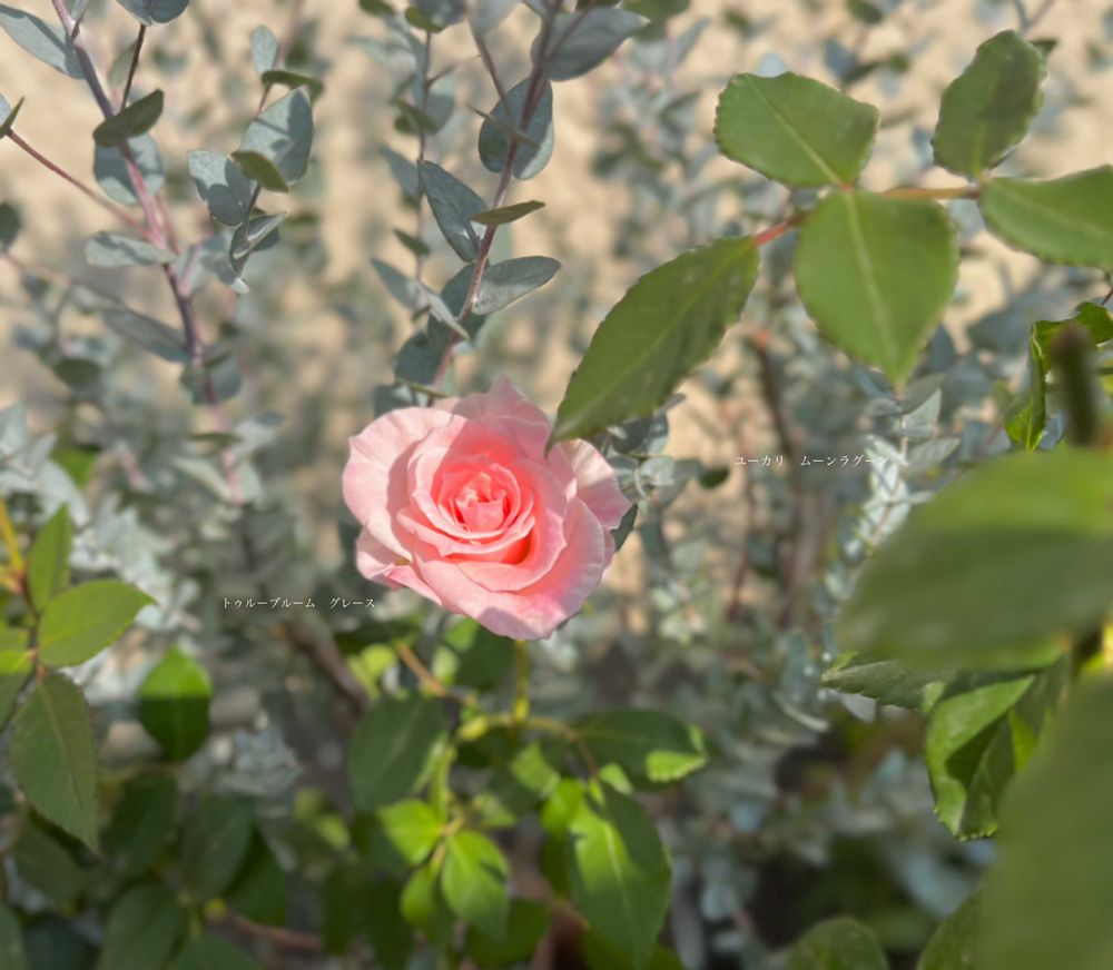 ユーカリのシルバーリーフとピンクのミニバラのお花のコラボ🌿🌸