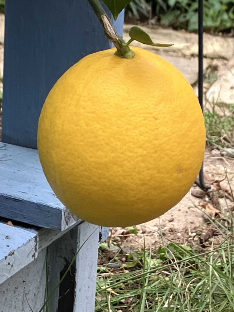 ④レモン🍋最後の一個まだ4年目の挿し木株なので5個収穫出来ましたが今年は昨年より大きな実が成りました🥰