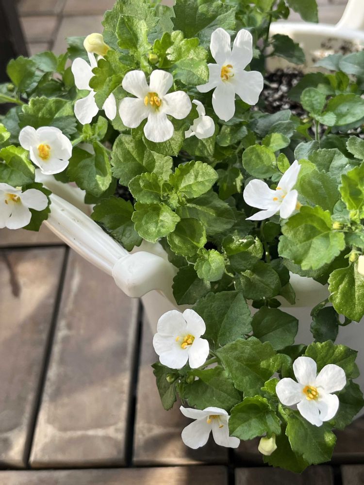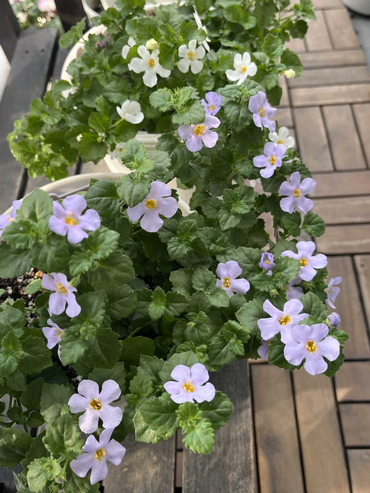 1️⃣PWステラスノーストームポーラーアイス🤍やっと花が咲きました😆よかった❗️2️⃣グレイシアブルーと一緒に🎵 3️⃣PWタゲテスゴールドメダル✨花数が増えてきました🎀シトラスミントの爽やかな香りがします😃