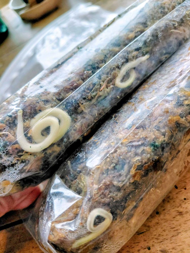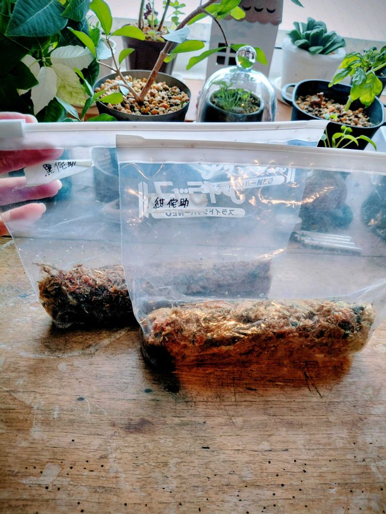 あ、水苔に包んでジップロックに入れている、紺侘助に黒侘助の種はどうなったかな?