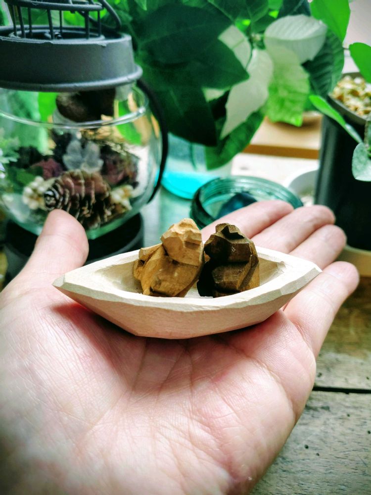 週末、お出かけに木彫り店へ連れて行ってくれまして。