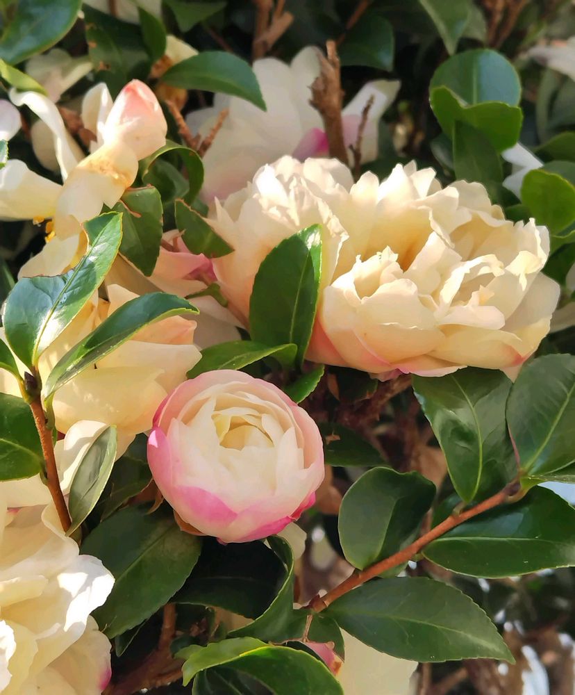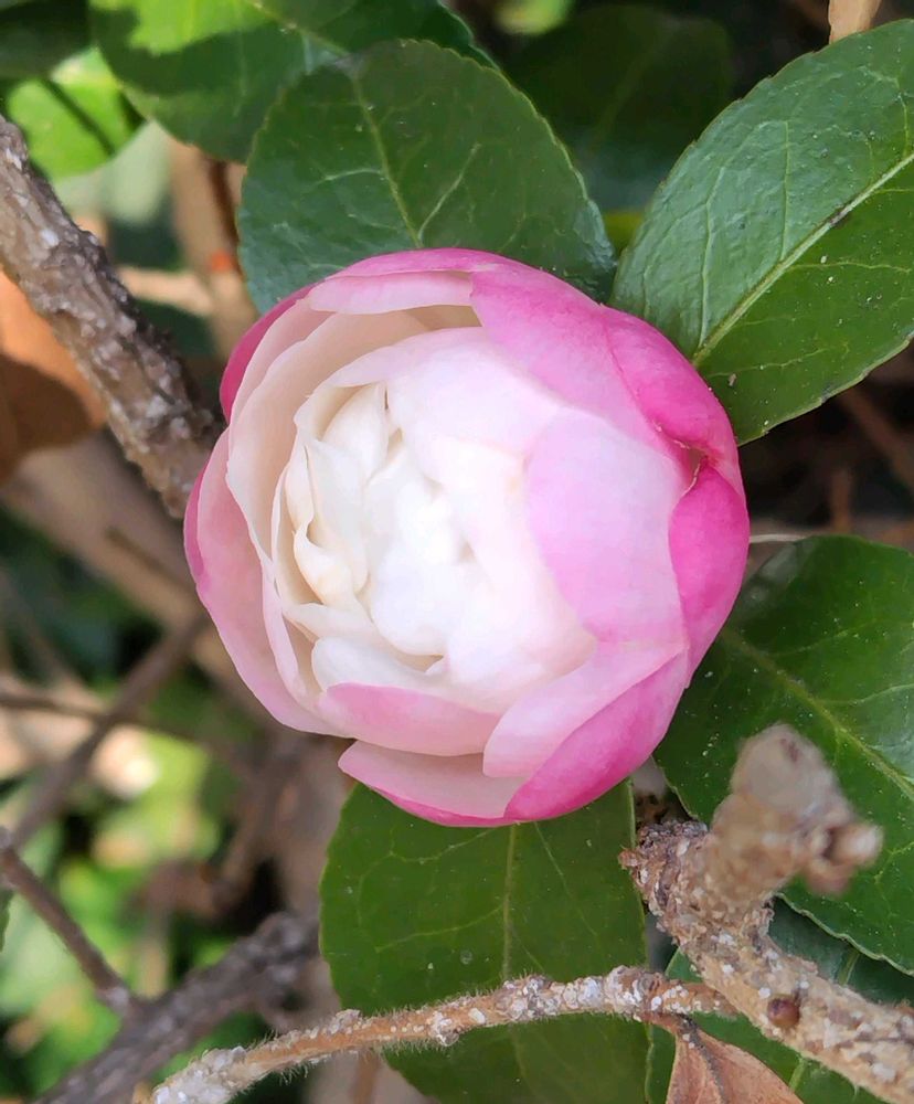 近くの郵便局のサザンカ(山茶花)☘️💮🌸💮☘️