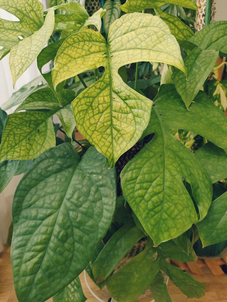 新芽が開き、だいぶ葉数が増えました(2025.10pic)🌿ライム色が新葉です😉葉脈バッキバキ💪大好物ですわ〜😍
