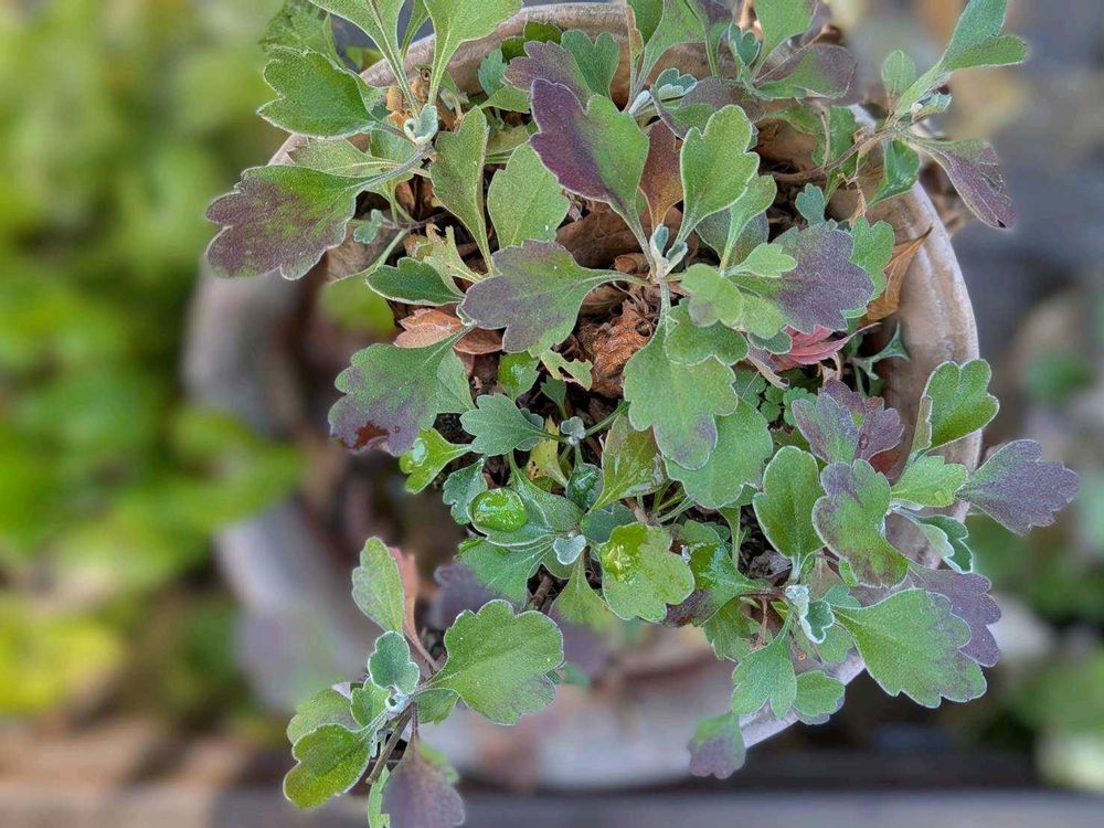 デッキの小菊の葉っぱは寒くて