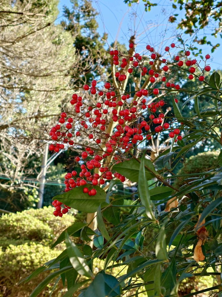 ①②ナンテンの実があちらこちらで見られ、もう紅葉も終わった境内を彩っていました🔴