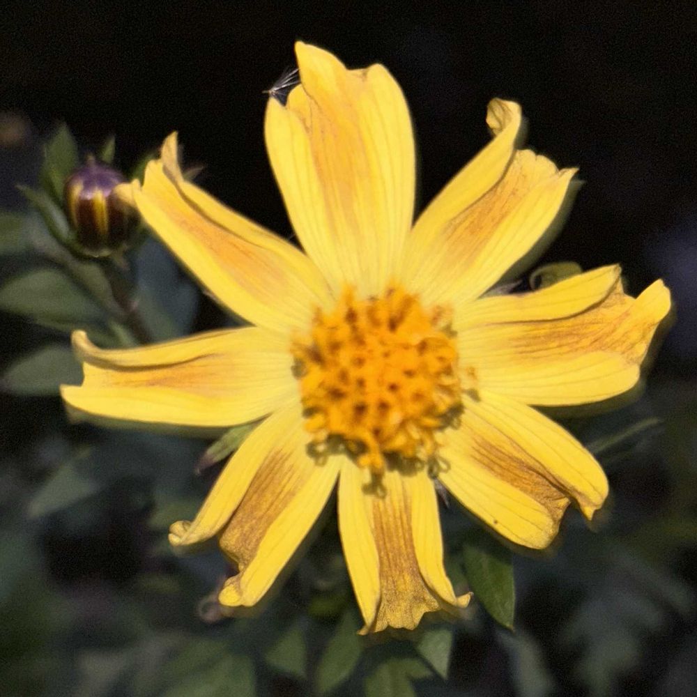 夜目にも、くっきり🌼ビタミンカラー👀😛寒さのせいで、花びらがシックになったキバナコスモスレモンイエロー🍋🤗と、開花マックスの小菊。そろそろ終わりが近いかも〜💦💦