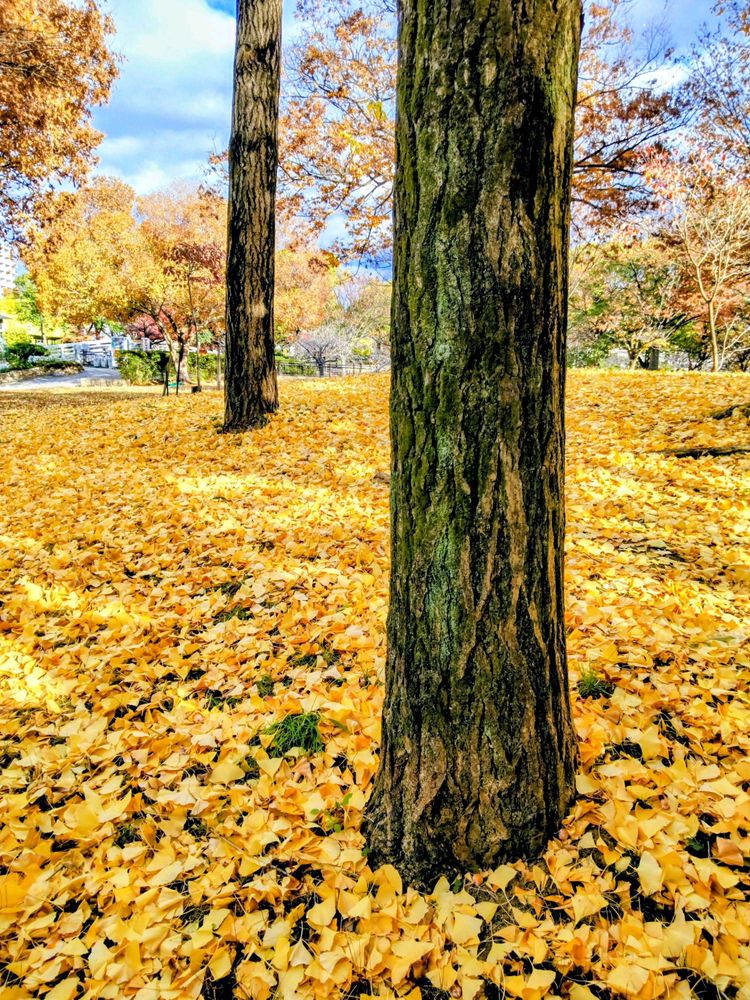 二枚目イチョウは銀杏の実がいっぱい落ちて踏みつけるとすごい匂いがするので誰も踏みこみません。