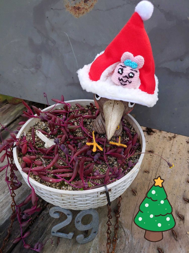 ハシビロコウちゃんにサンタおぼうぼ😆🎅