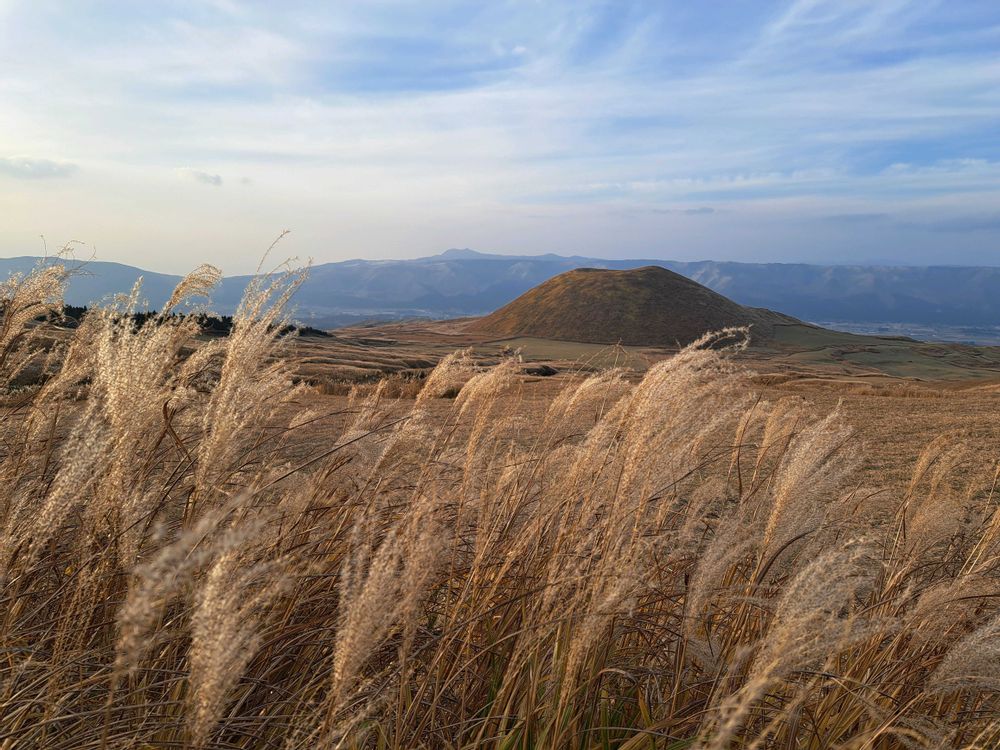 見たかった黄金色に輝くススキの阿蘇高原✨