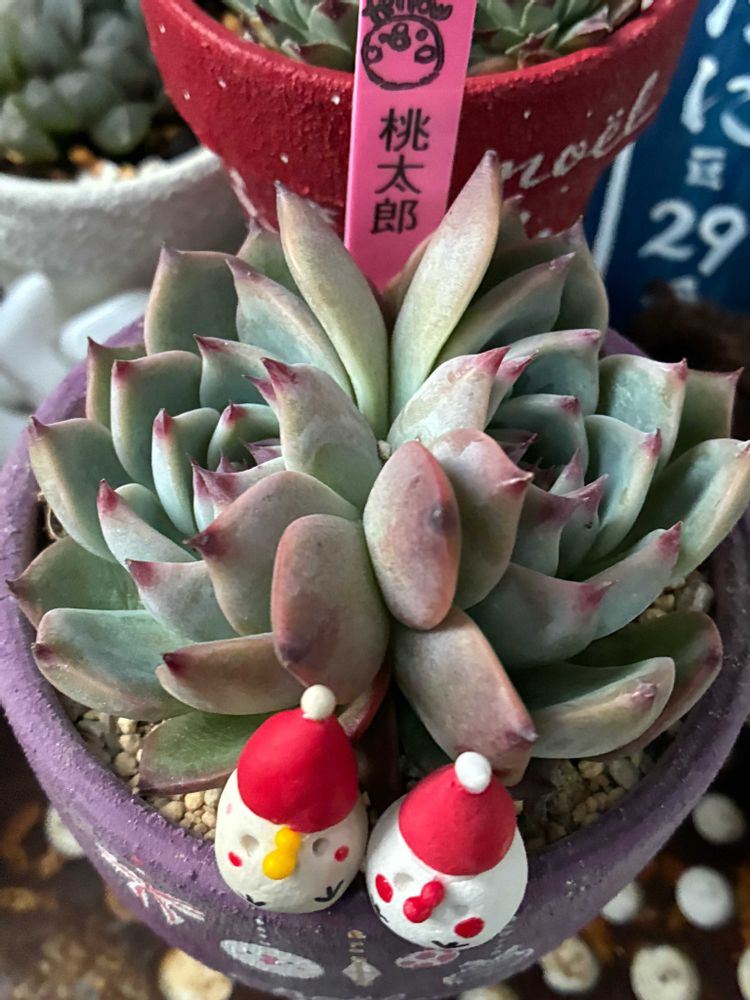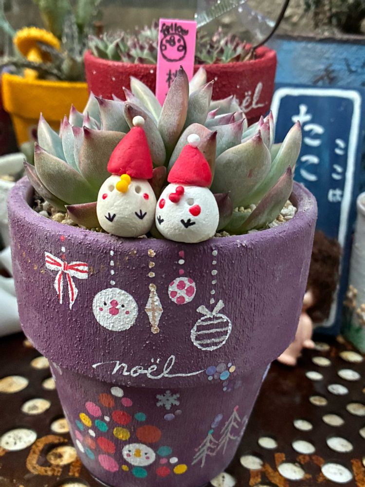 サンタおぼうぼピータンズとクリスマス鉢可愛い😍