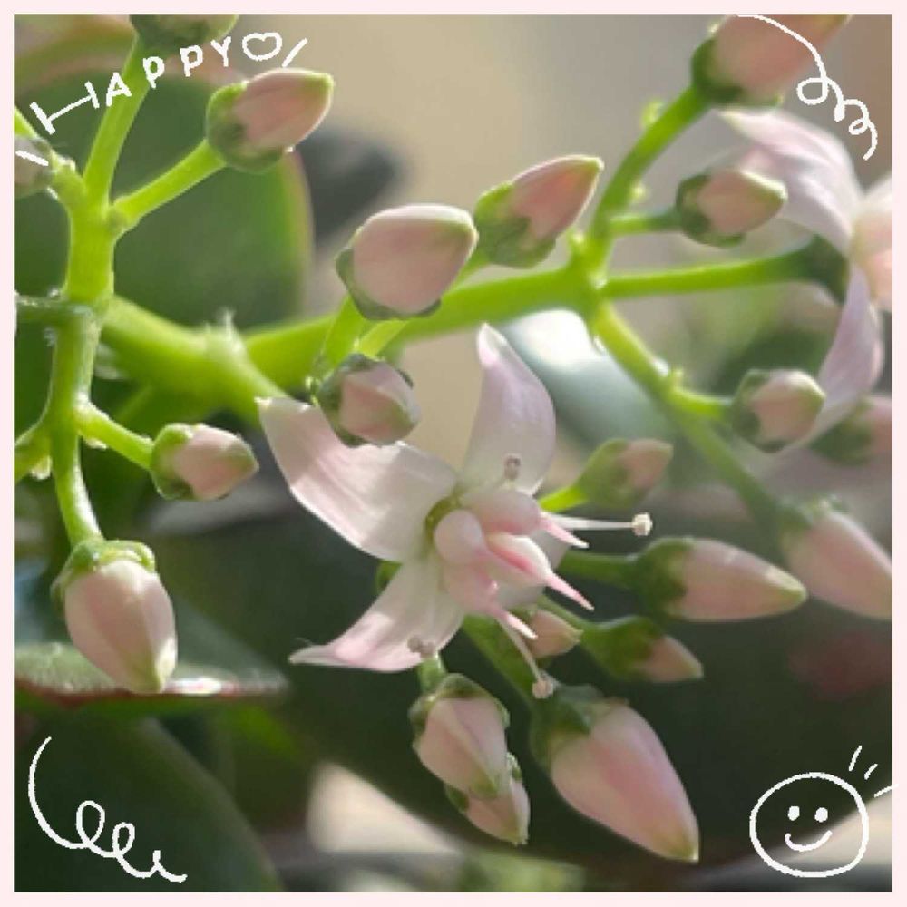 職場の金のなる木のお花がやっと咲いてきました♬うれちー😆