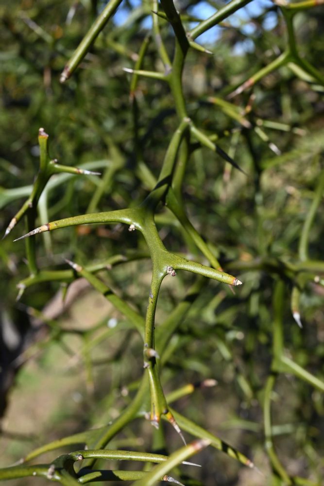 🍋カラタチの枝は緑色で太く、稜角があり、3cmにもなる大きくて鋭い刺が互生する。