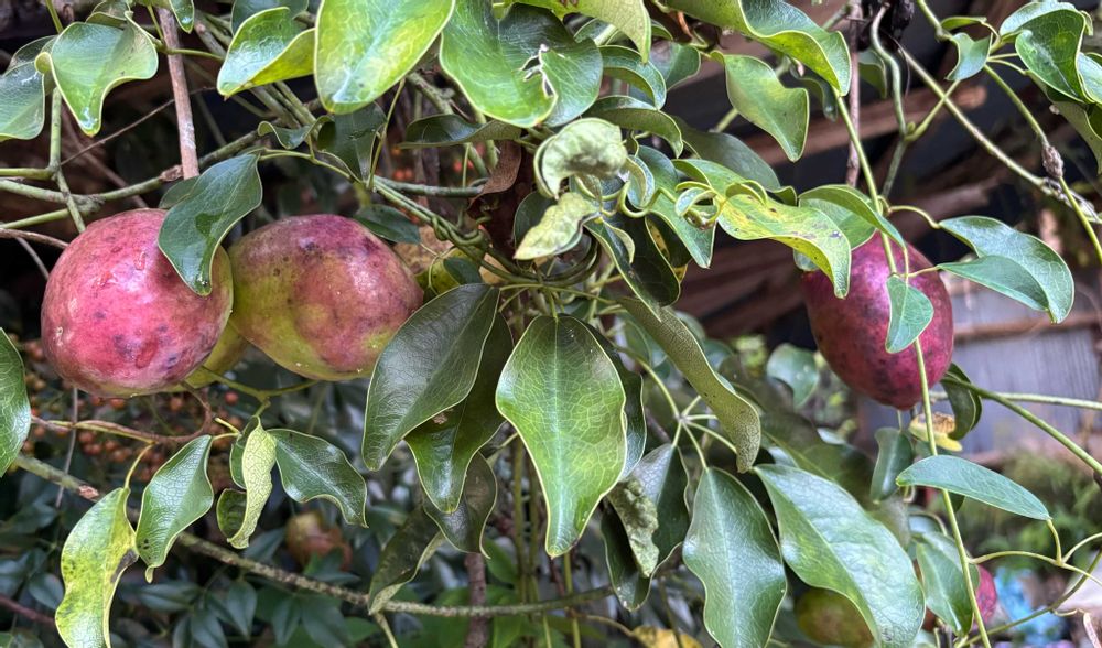 1️⃣今年、実が落ちてしまって一個も育たなかったレモンの木も、オーシャンブルーとのコントラストがステキに見えた。2️⃣我が家では一個もできなかったけど、知人宅には立派なムベが。😍❤️全部カラスさんに提供したそうです。❤️🐦⬛〜🎶