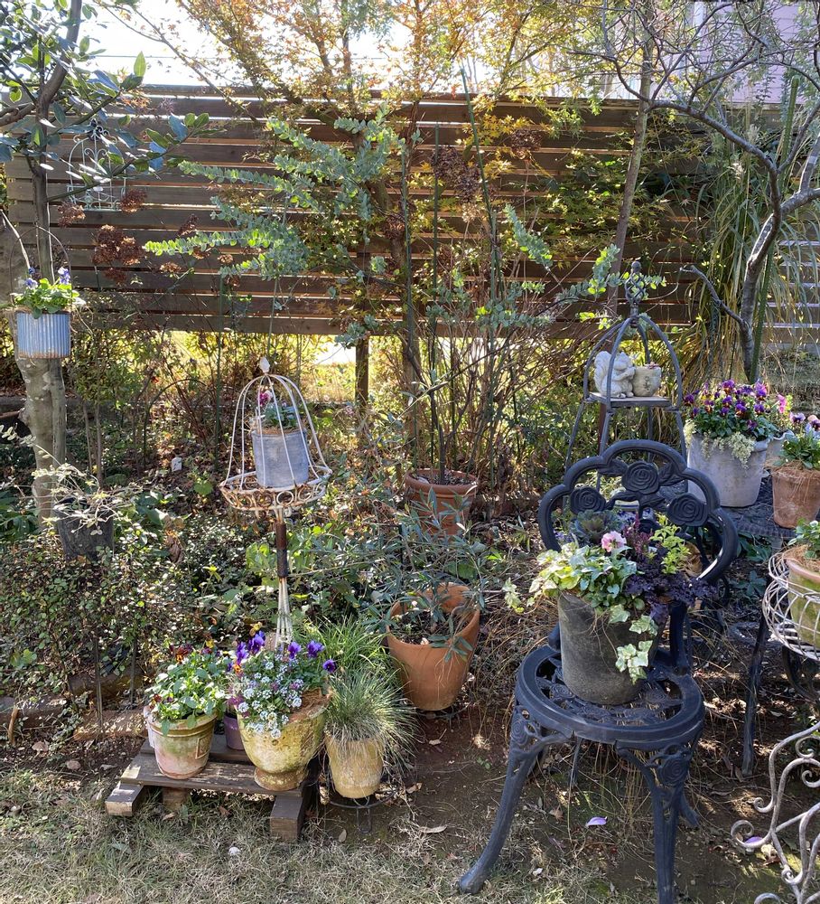 お庭 地植えの花はなくみんな鉢植えですෆ.*・゚