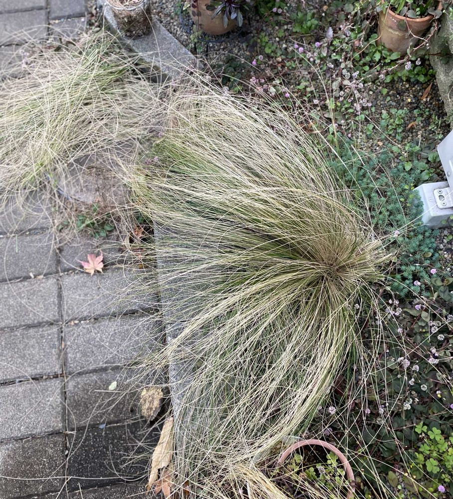 カレックスさん大きくなりすぎてカットしました 室外機に絡まったら大変💦