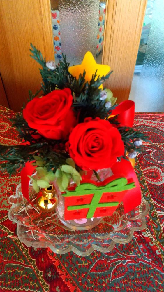 我が家も真っ赤なバラでアレンジしてみました☺️