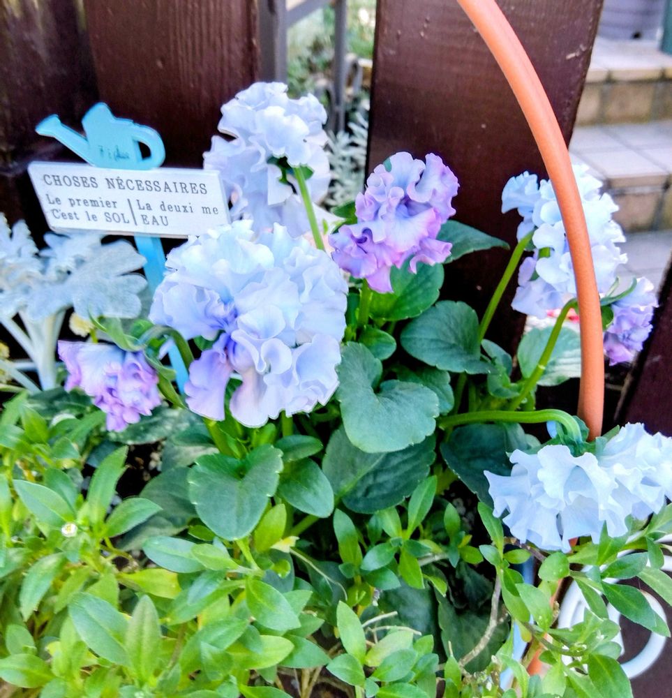 そして、もう一つの寄せ植えのパンジー•スリールドランジュの色がとっても美しいです🩵💜