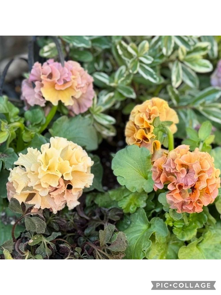 ロココ、欲張って4株も購入してしまい悩みましたが、色合いの似ている3株をいちばん大きな鉢に植えました。