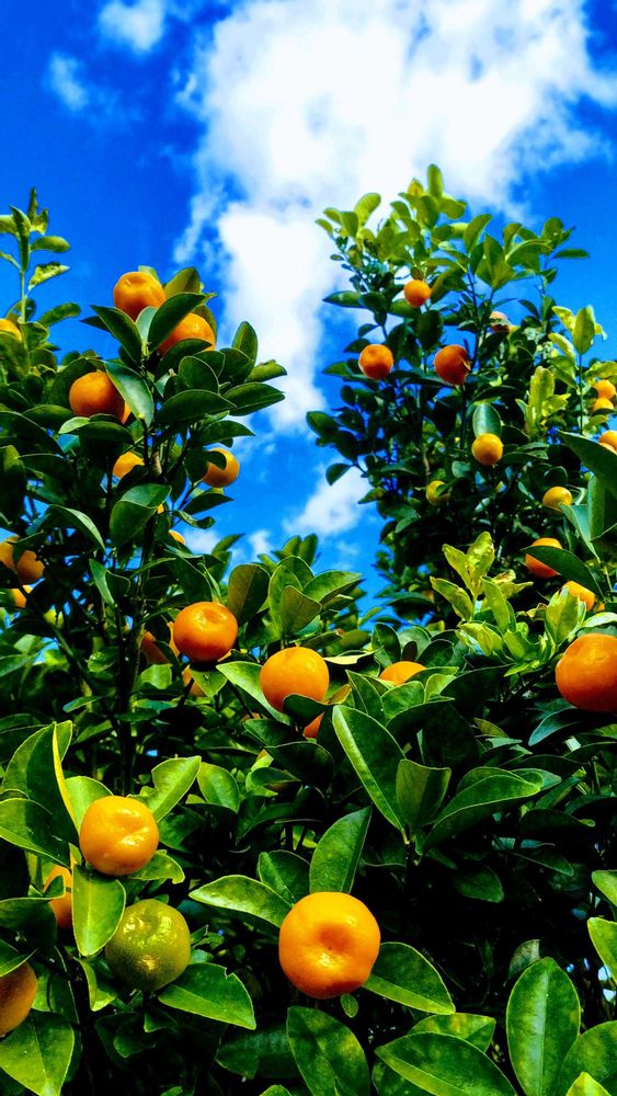青空に金柑…🍊色がとても綺麗👍👍🥰