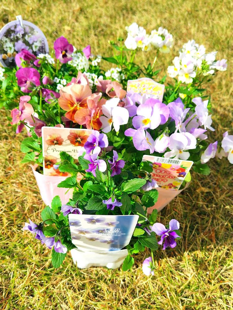 後ろは「春まで花いっぱいビオラ」💜🤍たくさん増えてくれるかな😉