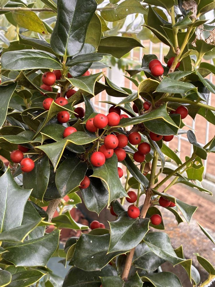 クリスマスホーリーの実を使おうと思っていたのに、取るのにケガしそうでやめました😁