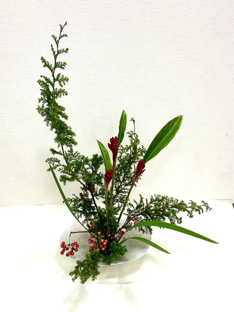 生け花 サンキライとジンジャーのバランスがとってもいいですね〜👌なーんて生意気な事言ってごめんなさいね〜🙇♀️