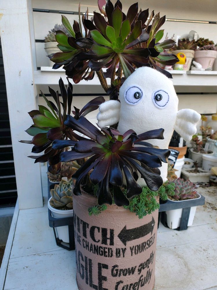 多分黒法師…左がGSのご縁で頂いた子、右がDAISO産、どちらも立派になりました😄かっきーさんのリメ缶がよく似合う~♥️