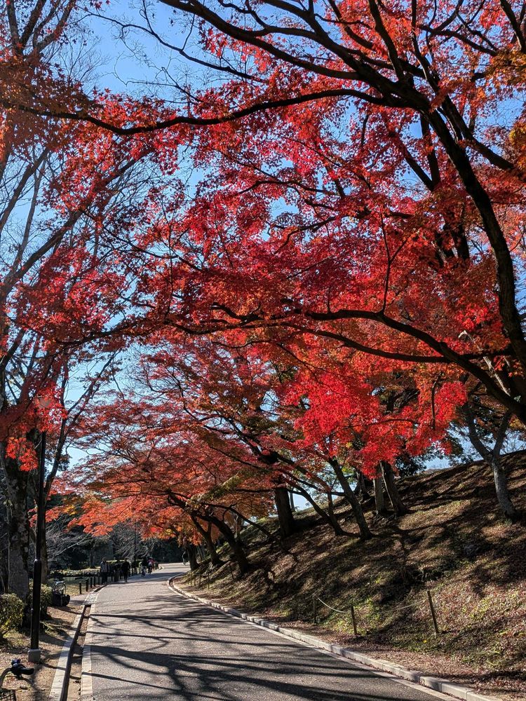 昨年工事中で、撮れなかった紅葉のトンネル大好きな紅葉🍁の道です🍁🍁🍁姫路城東側の堀の道です。